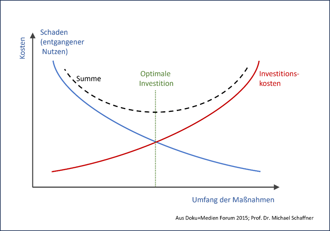 Bei der Planung einer Investition gilt es da Optimum aus Investitionskosten und resultierendem Nutzen zu ermitteln. Entgangener Nutzen kann hierbei vereinfacht als Schaden betrachtet werden. So lassen sich Investitionskosten und Schadenskosten einfach addieren und ein Kostenminimum ermittelt werden.