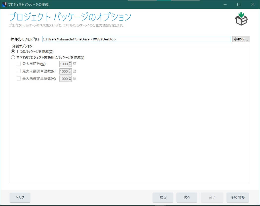 - [返却パッケージのオプション] ページで返却パッケージを作成する場所を必要に応じて指定し、[完了] をクリックすると、指定した場所に返却パッケージ(.sdlrpx)が作成されます。
